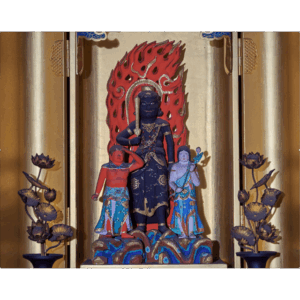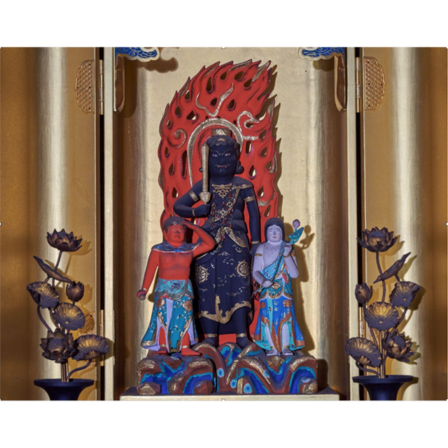 1598年頃、増上寺の芝への移転時、開山上人の念持仏・疱瘡(はやり病)快癒の不動尊とともに、三解脱門前へ。